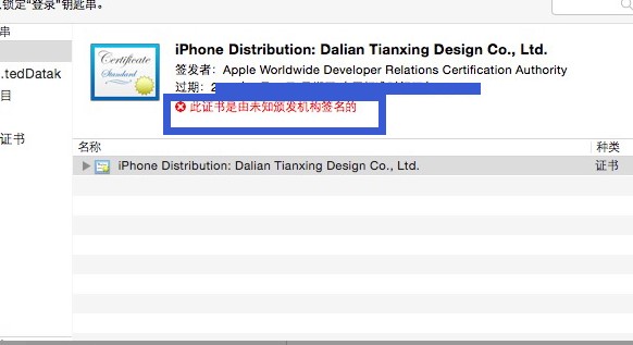 其實是由于之前誤刪除,將開發證書給弄沒了,導致Certificates中更新的證書都提示此證書是由未知頒發機構簽名的, 解決辦法是重新下載AppleWWDRCA.cer 網上關于這個問題的教程也一堆 可以隨機使用。